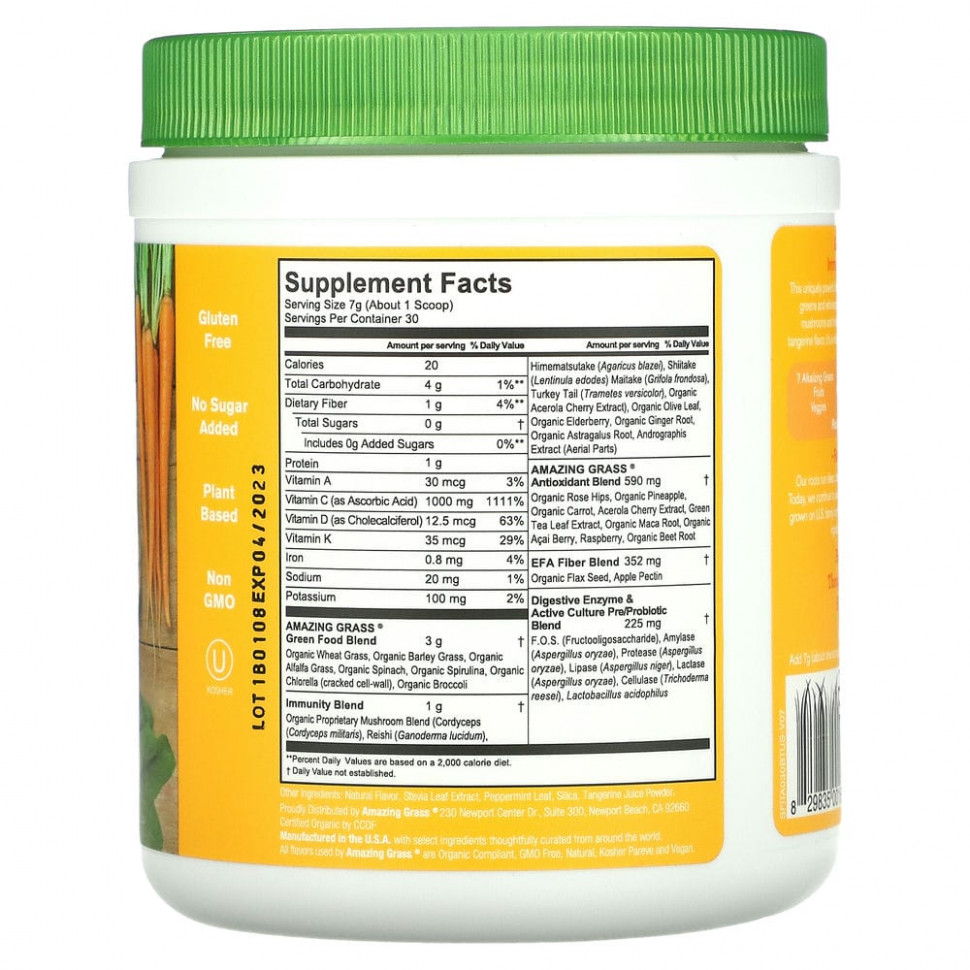 Эта уникальная мощная смесь, продуманным образом сочетает в себе нашу подщелачивающую фермерскую свежую зелень и цельные фрукты и овощи с грибами и травами, повышающими иммунитет. Благодаря содержанию 1000 мг витамина С и пикантному вкусу танжерина, она предоставляет собой освежающий способ чувствовать себя потрясающе каждый день.