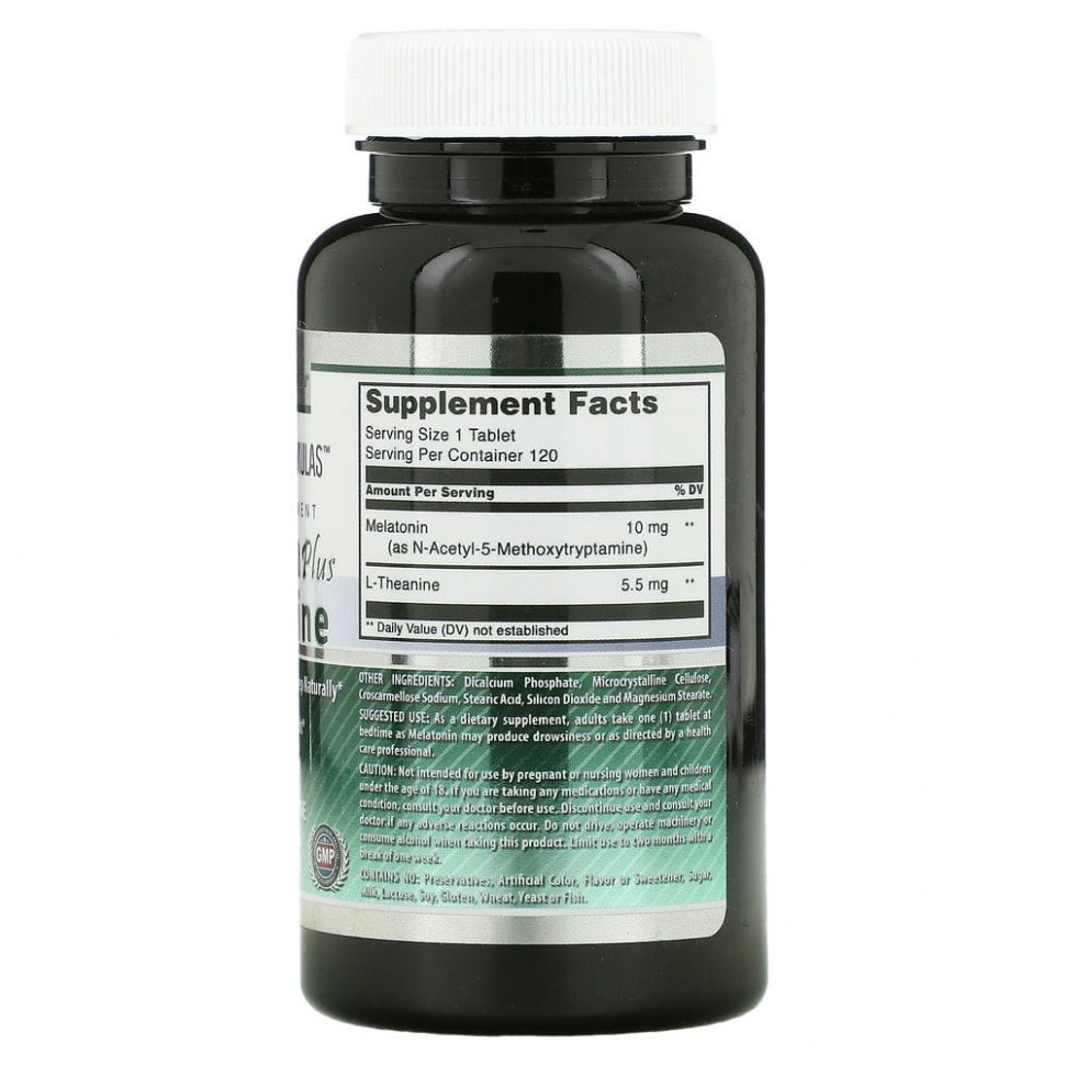 Мелатонин и L-теанин от Amazing Formulas — это уникальная смесь двух ингредиентов, которая помогает расслабиться и мягко уснуть. Мелатонин — это гормон, который естественным образом вырабатывается в шишковидной железе. Ночью организм удерживает более высокий уровень мелатонина, чтобы стимулировать и поддерживать сон. Это может помочь быстрее заснуть и лучше спать всю ночь. L-теанин — это расслабляющая и недиетическая аминокислота, содержащаяся в чайных листьях. L-теанин помогает регулировать работу мозга человека.