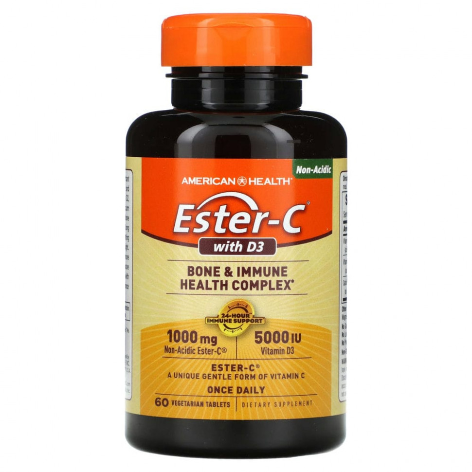 Сегодня витамин D считается более важным, чем когда-либо. Витамин D3, более эффективная и биодоступная форма по сравнению с витамином D2, играет активную роль в усвоении кальция и фосфора, необходимых для здоровья костей. Беспокоясь о вреде длительного пребывания на солнце, многие из нас не получают необходимый нам витамин D от естественного солнечного света. Комплекс некислого Ester-C® для здоровья костей и иммунной системы с D3 сочетает в себе 24-часовую иммунную поддержку благодаря pH-нейтральному витамину C Ester-C® и высокоэффективный (5000 МЕ) витамин D3 в формуле для приема один раз в день.