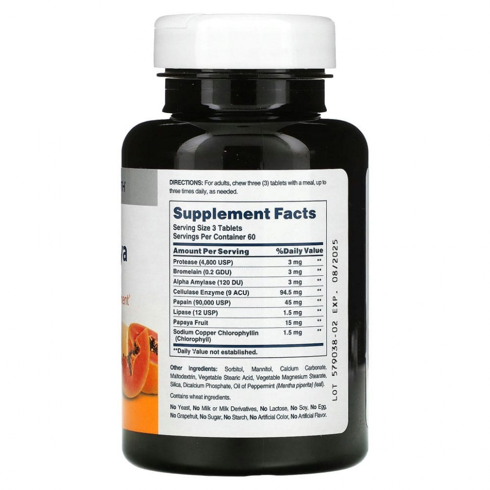 Улучшенная, более мощная, удостоенная наград пищеварительная добавка для приема после еды содержит на 100% натуральные ферменты и может быть особенно полезна при поиске более высокого уровня поддержки при неэффективном пищеварении. Каждая порция содержит 15 мг восхитительных плодов папайи, обогащенных известными ферментами, включая папаин, протеазу, амилазу и бромелаин, которые способствуют правильному усвоению питательных веществ и помогают переваривать белки, углеводы и жиры. Мята перечная и хлорофилл добавлены, чтобы уменьшить неприятный вкус и смягчить дыхание.