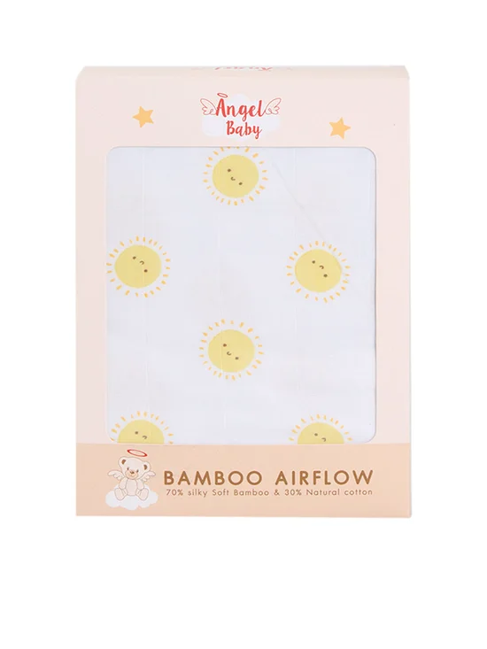 Sun Print Swaddle from the brand ANGEL BABY, Made from good quality materials and comes with a cute sun pattern. The fabric is made from 70% Bamboo, 30% Cotton, which are standard materials and specifically selected from the brand. Makes the fabric soft and does not irritate the skin. Can absorb water well Compact size Can be easily carried Let your baby use it with confidence. It’s another item that mothers shouldn’t miss.