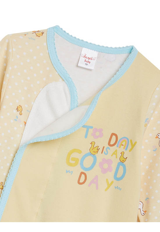 Clothing for babies from the brand ANGEL BABY features adorable prints and is made from 100% COTTON USA fabric. The soft material provides comfort and breathability, ensuring no irritation to the skin. Perfect for keeping your little one warm and cozy for a peaceful night’s sleep, with fabric that’s gentle on sensitive skin.