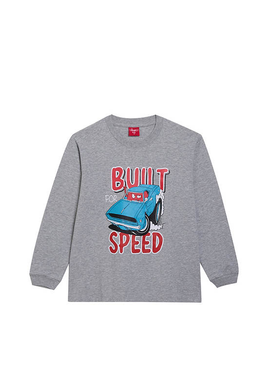 Boy Pyjamas Set Long Sleeves Cuffs T-shirt + Cuffed Pants Build Speed Print
