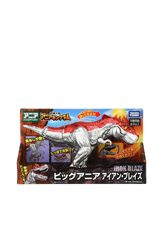 ANIA [Iron Blaze (Tyrannosaurus)] from [Adventure Continent Ania Kingdom: Legendary Guardians] is now available as a big-sized Ania, measuring approximately 27cm in length! Press the switch to open the mouth! Enjoy the [biting action]! Iron Blades (Tyrannosaurus) has movable legs and tail. In addition, if you press the switch on the neck, the mouth will open and you can enjoy the biting action.