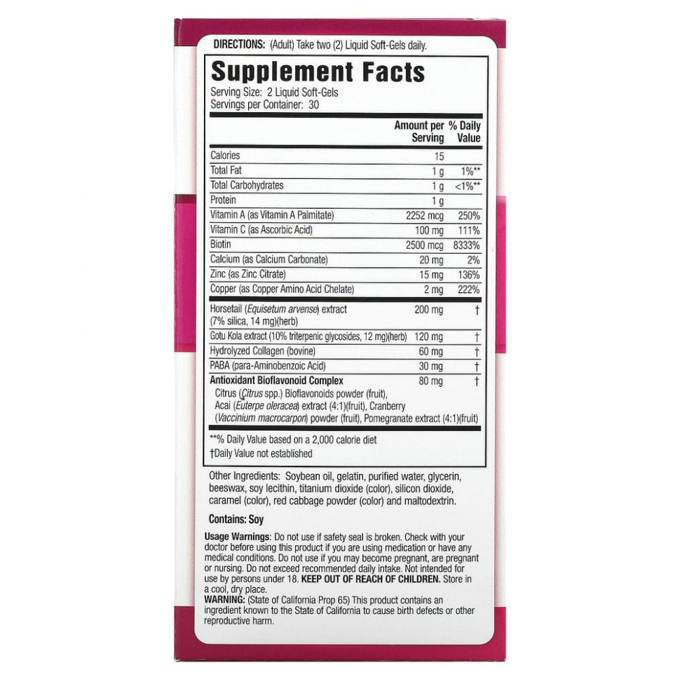 Экстракт хвоща — содержит широкий спектр минералов, включая 14 мг диоксида кремния для структурной поддержки волос и ногтей.