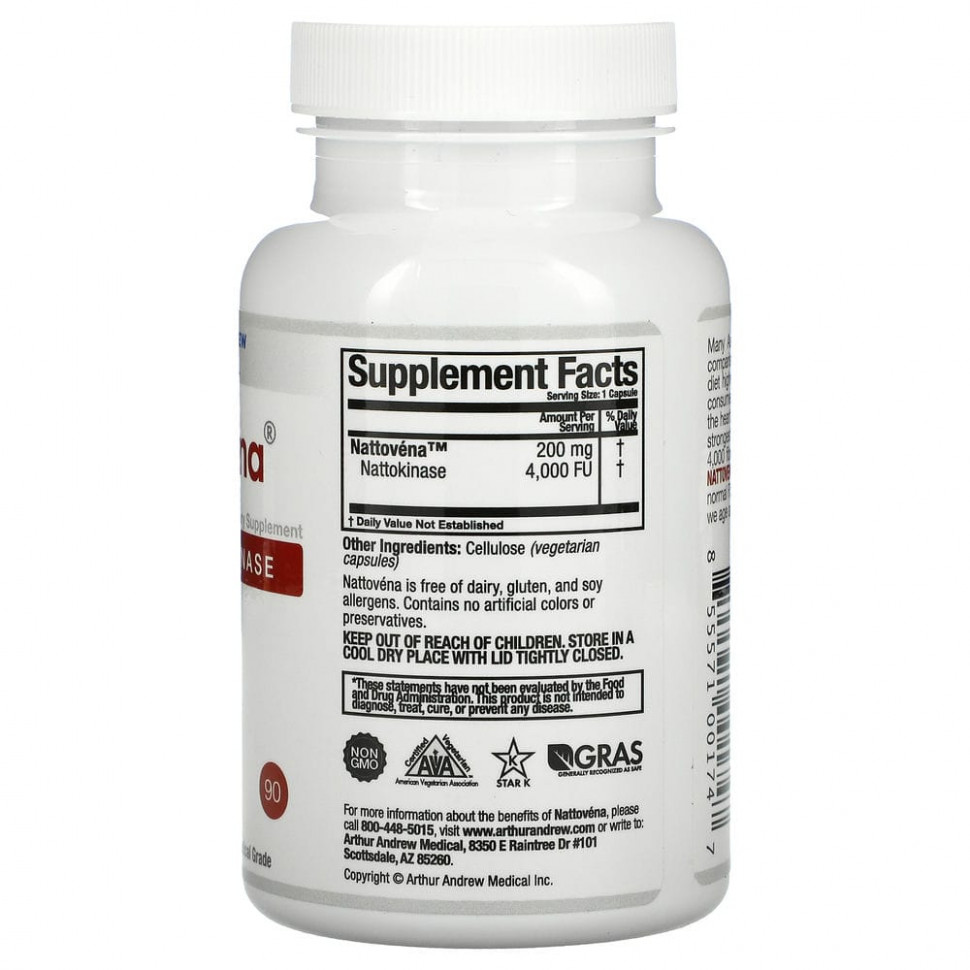 Многие азиатские культуры демонстрируют лучшее здоровье сердечно-сосудистой системы по сравнению со средними взрослыми в США, что широко объясняется рационом с более высоким содержанием натуральных пищевых ферментов. Японцы веками употребляли в пищу блюдо, известное как натто, которое содержит полезный для сердца фермент наттокиназу. NATTOVENA® — это самый мощный в мире продукт с чистой наттокиназой, имеющий 4000 фибринолитических (растворяющих фибрин) единиц активности на капсулу. NATTOVENA поддерживает кровообращение и здоровье сердца, поддерживая нормальный уровень фибрина. Фибрин — это белок, который начинает вырабатываться в избытке по мере старения организма и имеет важное значение для нашего здоровья и общего самочувствия. NATTOVENA — это мощный фермент для очищения крови, разработанный для поддержания нормального здоровья сердечно-сосудистой системы.
