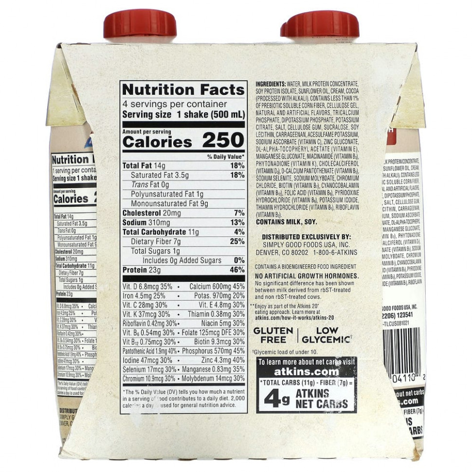 Atkins, Насыщенный протеином коктейль, сливочный шоколад, 4 коктейля, 500 мл (16,9 жидк. Унции)