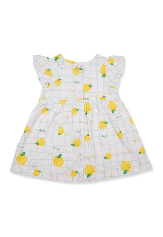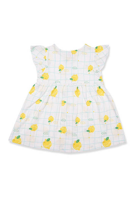 Collection Cocoa Lemon Dress with vented sleeves Off-white Bright yellow lemon diffuse print