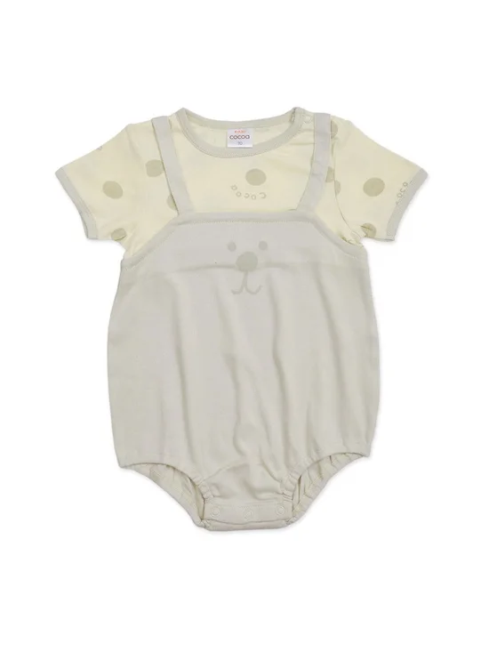 Collection Cocoa Dot, a gray short-sleeved jumpsuit with a Motif pattern. Nong Bear adds a twist to the undershirt. Cream color, scattered print, green polka dots. (The pieces are cut into one piece.) Meticulously sewn. Made from good quality bamboo fiber fabric, Cotton USA 30%, Bamboo70%, Jersey fabric type, smooth, soft and gentle touch. Lightweight fabric, cool and comfortable in hot weather. Smooth to the touch, nice to wear Special properties of bamboo fiber Can resist bacteria as well. Therefore, it is considered a fabric with the best properties that is suitable for use by children and all ages. Because it’s safe for all skin. Can be worn every day.