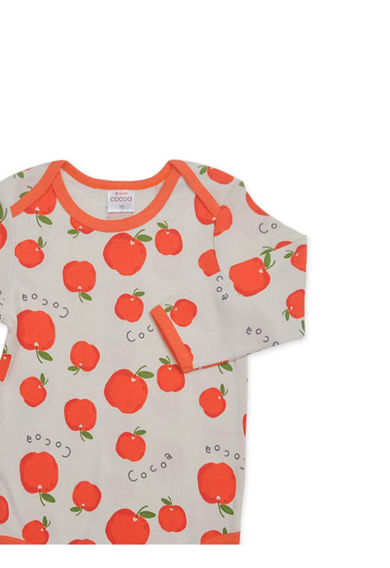 Collection Cocoa Apple Bodysuit Necklace Cream, orange curl, add a trick with a diffuse print. Carefully tailored, made from 100% Cotton USA high-quality yarn, rib fabric, thick and soft fastener fabric, smooth and gentle touch, can be worn every day.