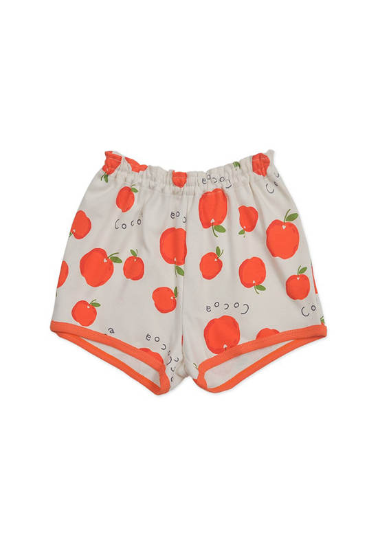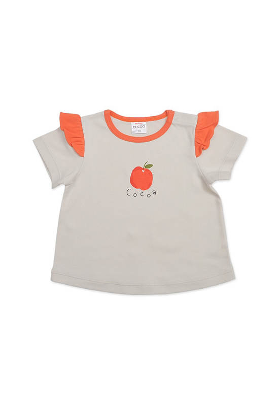 Collection Cocoa Apple, a set of short-sleeved shirts, ruffled sleeves, cream color, Motif pattern, pair of shorts. Cream color, orange hem, adding a playful touch to the pants with a scatter print. Red-orange apple pattern. Bright colors make you feel fresh. Very cute and cute to wear. Meticulously sewn Made from good quality yarn, Cotton USA 100%, Interlock fabric type, thick and soft fabric. Smooth, soft, gentle touch Can be worn every day