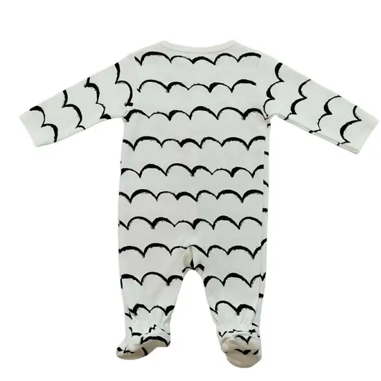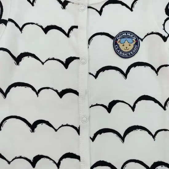 Baby long sleeve romper cover button fron cotton fabric spandex white wave pattern for babt 0 to 3month shirt bust 54cm.length 50cm.