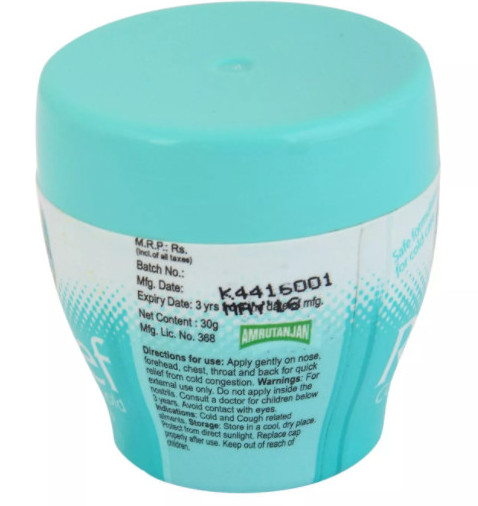 Бальзам Релиф (Relief Cold Rub) от Amrutanjan – это натуральное средство, которое эффективно облегчает состояние при простуде и кашле. Средство помогает избавиться от симптомов простуды, естественным образом устранить заложенность носа и вернуть легкое и свободное дыхание. Бальзам Релиф Amrutanjan способствует уменьшению болей в теле и головной боли, которые возникают от простуды. Мазь обладает успокаивающим ароматом и быстро впитывается в кожу.