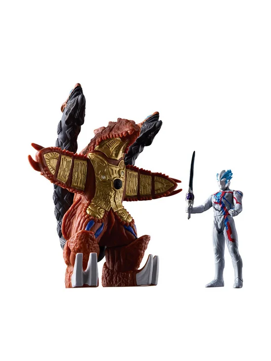 From the Ultra Soft Vinyl series, the Ultra Soft Vinyl Series Ultraman Blazer Battle Set from the BANDAI brand is now available, which is a set of two soft vinyl figures, an Ultra Hero and a giant monster! Ultraman Blazer is a special specification that reproduces the figure holding the thunder sword [Chilsonite Sword]! The other Blue Dogebarga is an impressive DX size with a total height of 180mm. Let’s recreate the deadly battle between the evolved super enemy Blue Dogebarga and Blazer with your own hands!