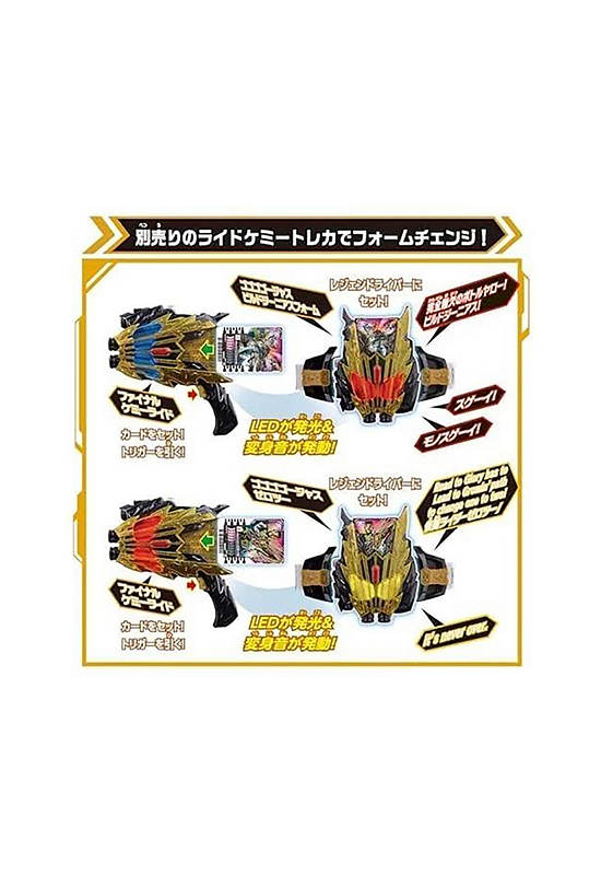 Furthermore, if you set kamen rider legendary legend ride chemy trading card into the legend kamen raiser, transform it into a buckle and attach it to your belt, the led will light up and the transformation sound will be activated!