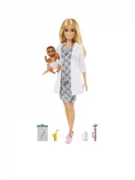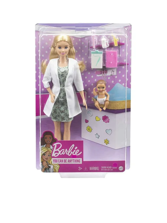 Explore a world of caretaking fun with the Barbie baby doctor playset from BARBIE! When a girl plays with Barbie, she imagines everything she can become, and if you love taking care of babies, you can be a baby doctor! Playset includes the Barbie baby doctor doll (12-in/30.40-cm) who wears a sweet dress with a butterfly pattern and a white doctor’s coat, and her cute infant patient who sports a diaper. Playset also comes with 6 accessories (some of which Barbie baby doctor doll can hold): a stethoscope, thermometer, oscilloscope, chart and a pink baby blanket and baby bottle to keep her patient happy and healthy. Kids will love the endless possibilities for creative expression and storytelling fun! Doll cannot stand alone. Colors and decorations may vary. Makes a great gift for ages 3 years old and up.