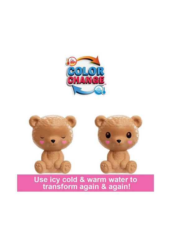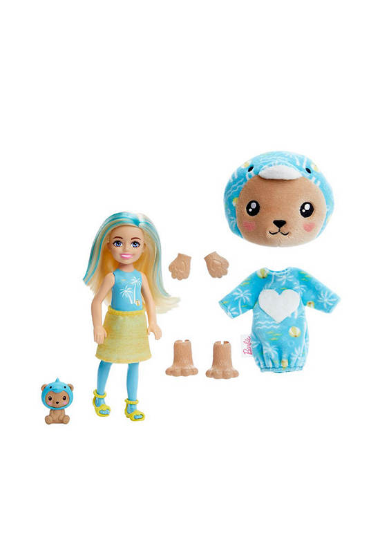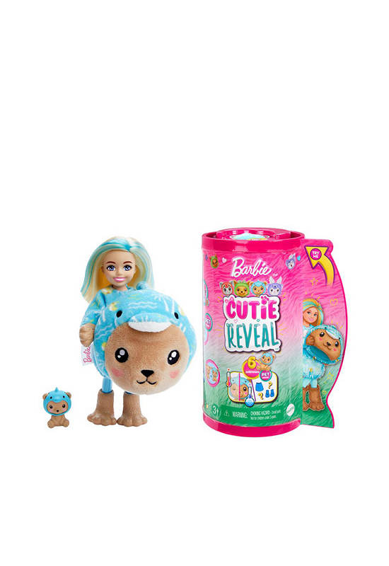 With 6 surprises in 1 package, Barbie Cutie Reveal Chelsea dolls deliver the cutest unboxing experience with plush costume-themed animal friends, fashions and transforming fun! Which doll will you reveal? Unbox to find an adorable puppy wearing a plush frog costume! Lift the costume head and reveal a Chelsea doll with long, brown hair streaked with pink and twinkle-shine shape face details. Open the 3 surprise bags to find fashions and accessories like a cute skirt, a pair of shoes and an adorable matching mini pet. Kids can dress and style Chelsea doll by flipping the costume top to find a super-soft, over-sized fleece jacket with a cute fashion print. The costume head turns into a bed for the mini pet friend, too! Use icy cold water to ‘open’ and ‘close’ the mini pet’s eyes change back with warm water. Repeat again and again Chelsea Cutie Reveal dolls make a great gift for kids 3 to 7 years old