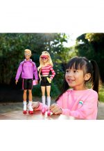 BARBIE and Ken Fashionistas dolls celebrate 65 years of signature style with a 2-doll set designed with a modern twist on an iconic look! Barbie and Ken doll are ready to skate out of the box inspired by their classic roller-skating looks and 6 accessories from the 1980s! Barbie doll gets stories rolling in a pink striped top, denim shorts, hoop earrings, knee socks and pink roller skates! Ken doll keeps up in a purple top with sleek stripes, black shorts with matching side stripes, socks and white roller skates! Storytelling pieces include a visor, headphones, 2 pairs of sunglasses, water bottle and boombox! Perfect for play or display, the commemorative Barbie and Ken set makes a great gift for collectors and kids ages 3 years and older!