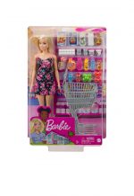 Turn an everyday activity into storytelling fun with BARBIE doll and 20 supermarket accessories! The silvery shopping cart features realistic details and rolling wheels give it a push to get the story started. Grocery items like fruits and vegetables, yogurt, honey and household necessities add realistic detail to shopping stories. Some pieces have handles that Barbie doll can hold on her own, and some have a plug-and-play design that’s compatible with other Barbie playsets (sold separately). Barbie doll is ready for shopping fun in a sporty black dress with pink floral print and white sneakers. With so many opportunities for role-play fun, this Barbie doll and accessory set makes a great gift for 3- to 7-year-olds. Encourage them to explore new stories because you can be anything with Barbie!