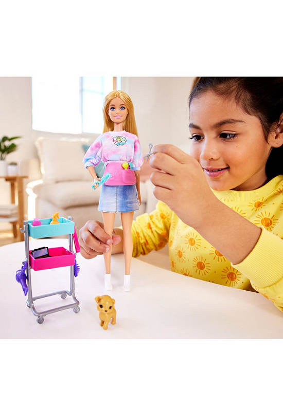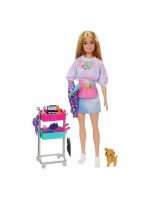 Barbie Malibu on Set Stylist Doll and Playset Set from the brand BARBIE, Barbie Stylist Playset. Live your child’s dream of becoming a stylist with this Barbie playset inspired by the YouTube series. The Barbie doll playset features stylist-themed scenes from Barbie. and Barbie Onset and is an inspiration to children Write your script for fun. Help Malibu do her hair and makeup with 14 themed accessories, including a puppy. Stylist’s cart and other items such as aprons, hair dryers, brushes, and makeup palettes Some have handles that fit the doll’s hand to indulge in imaginative role-playing and story-telling.