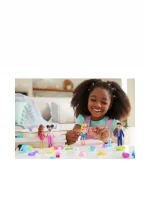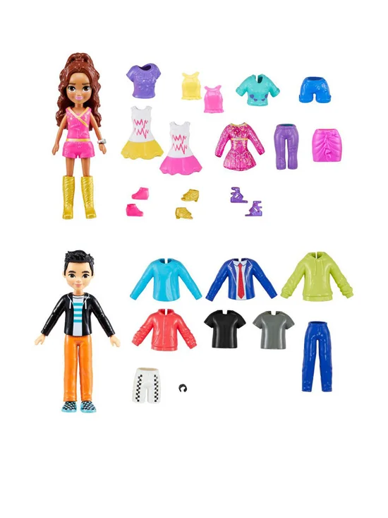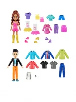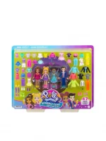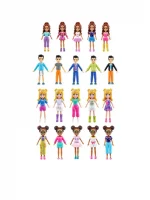 The Polly Pocket Sparkle Cove Adventure Fashion Pack is an adventure in styling with 4 dolls and more than 45 additional fashion pieces! The 3-inch dolls include Polly and Shani, plus 2 new friends inspired by the series, Gilda Kapoor and Jake Tam! There are endless storytelling possibilities with clothes that range from athleisure-wear to party-ready outfits — pieces for each doll add elements of their signature looks. Style with tops, bottoms, dresses, suit jackets, rompers, and even a pair of overalls — accessorize with sneakers, boots, heels, or sandals!