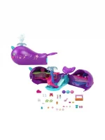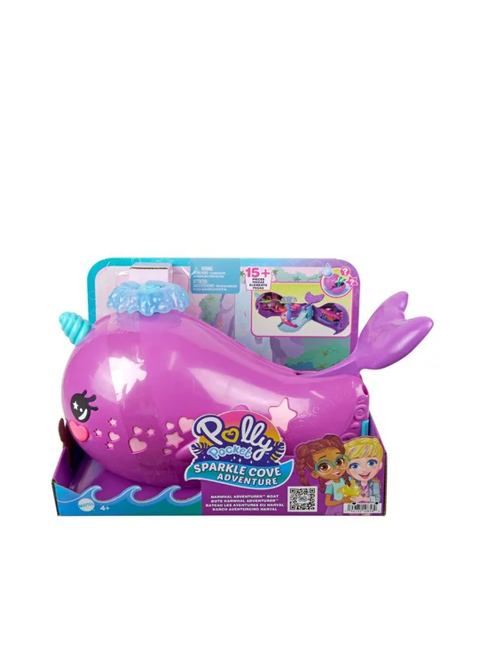 All aboard the Sparkle Cove Adventure™ Narwhal Adventurer™ Boat that sets stories sailing with 2 dolls, 3 dissolvable pearls, 13 accessories, 2 levels, 6 play spaces, and water features! Open to reveal a cruise ship interior with a fun bedroom and bathroom, dining room and buffet with yummy snacks, adventurous golf course, dance floor, and a splash-tastic pool with slide! Kids can fill the pool with water to activate the slide and press on the narwhal tail to spout water out of the blowhole! So many reveals to discover — dissolve the pearls in water to find fun surprises! A working elevator takes dolls between the cabins and dining level! Get a hole in one on the mini golf course through the spinning windmill! Find the party in the ballroom with a performance stage and dance floor — use the thumb wheel to see the dolls show off some sweet dance moves!