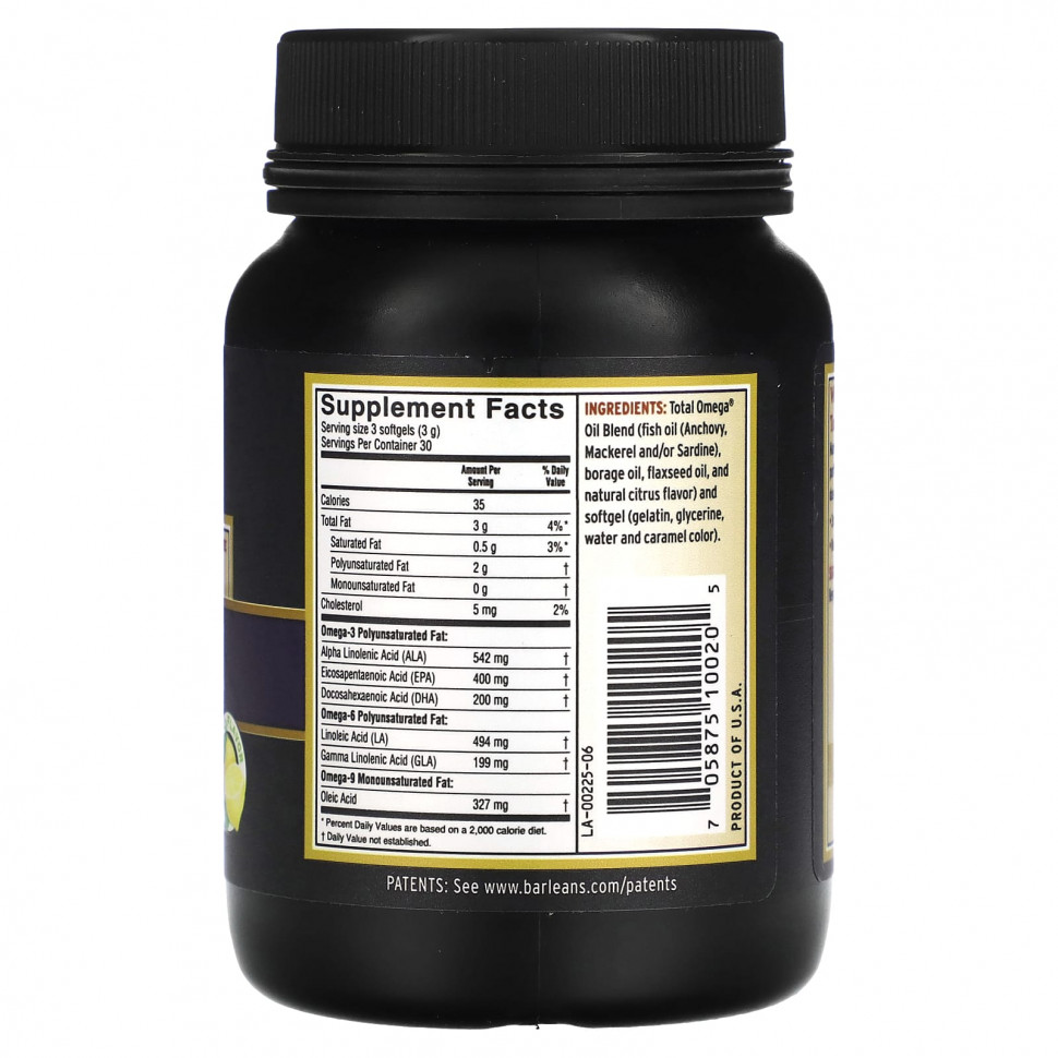 В состав Total Omega® входит свежее отжатое льняное масло и чистое масло бурачника, а также наш ультраочищенный рыбий жир Fresh Catch®. Каждая порция содержит сбалансированную дозу омега-3, 6 и 9 кислот.