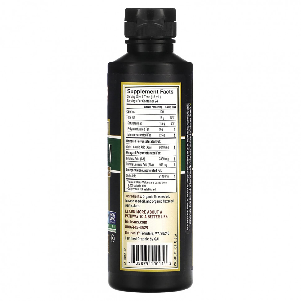 Органическое льняное масло, масло семян бурачника, и органические частицы льняного семени.