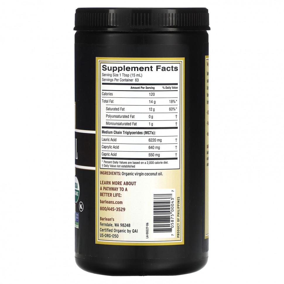 Органическое кокосовое масло первого холодного отжима от Barlean — это натуральный источник среднецепочечных триглицеридов (MCT). Наши кокосы собирают на пике вкуса содержания питательных веществ, а затем подвергают холодному отжиму для сохранения высочайшего качества и наилучшего вкуса.