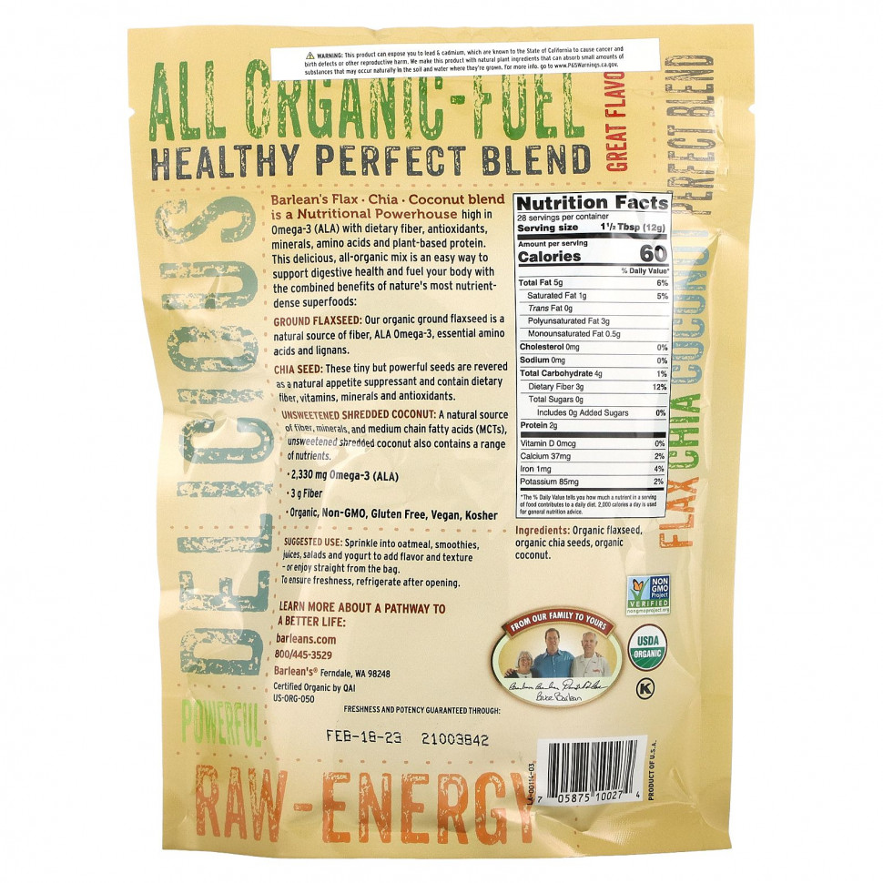 Смесь «Лен, чиа и кокос» от Barlean’s — это мощный источник питательных веществ с высоким содержанием омега-3 (АЛК), с клетчаткой, антиоксидантами, минералами, аминокислотами и растительным белком. Эта восхитительная, полностью органическая смесь — простой способ поддержать здоровье пищеварительной системы и зарядить организм энергией благодаря сочетанию полезных свойств самых богатых питательными веществами суперфудов.