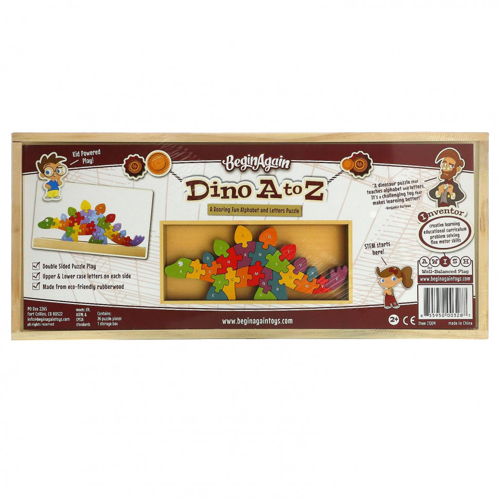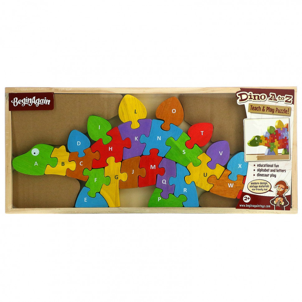 Этот массивный деревянный динозавр ожил, решая задачи с помощью алфавита и головоломок. Эта игрушка-алфавит из 26 частей, изготовленная из прочного каучукового дерева, является одной из самых популярных головоломок всех времен. STEAM начинается здесь. В пазле «Динозавр» с одной стороны заглавные буквы, а с другой — прописные. Эта головоломка с динозаврами учит решению задач, алфавиту и распознаванию букв, вдохновляя воображение вашего ребенка.