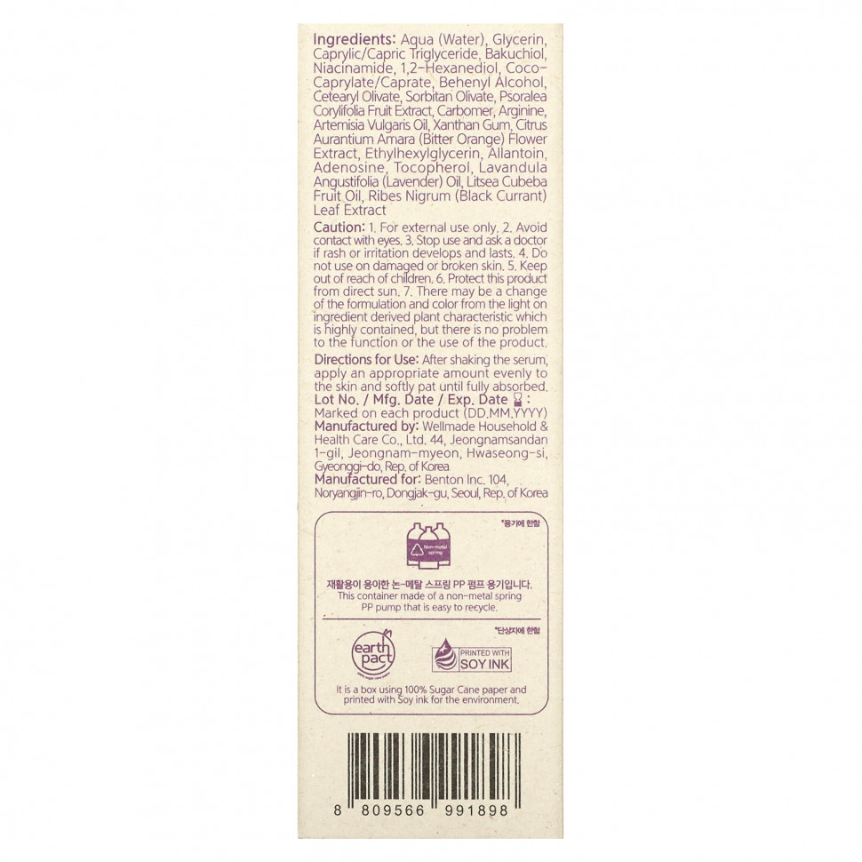 Сыворотка Benton Bakuchiol, содержащая 2,5% чистого бакучиола из плодов псоралеи корилифолистной, помогает сохранить кожу здоровой и гладкой, успокаивает и защищает кожу.