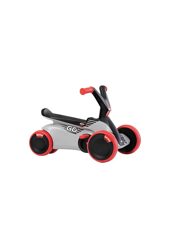 The BERG GO² is our smallest go-kart for children from 10-30 months. But do not underestimate this tiny go-kart. On this go-kart your toddler will learn to scoot or pedal much faster! In short, 2 in 1. First, you can keep the pedals folded up so that your little one can scoot. Due to its design, your child can easily use the BERG GO² as a push car without the pedals or the rear wheels getting in the way. Fold down the pedals when your child is ready for the next stage. Your tiny tot can then enjoy riding around on the BERG GO². You do not need to worry about your child tipping over because the four wheels of the BERG GO² keep it firmly grounded. A safe solution!