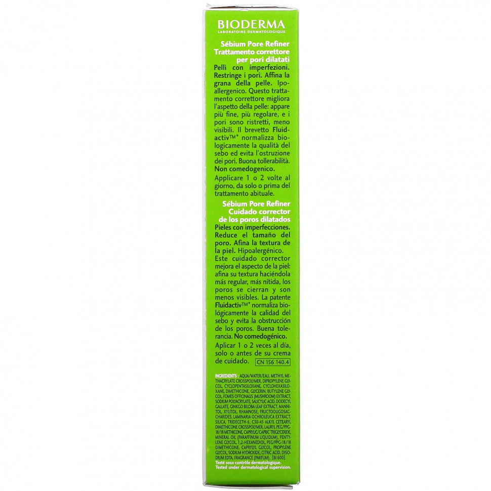 The exclusive Fluidactiv™* patent biologically regulates sebum quality and prevents pores from getting clogged. An astringent dermatological active agent refines the skin texture and the antioxidant agents preserve its natural radiance. The light, liquid formula of Sebium Pore Refiner instantly penetrates the skin and leaves a pleasant velvety finish.