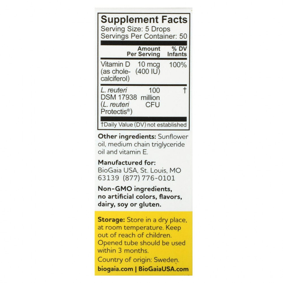 Детские капли BioGaia Protectis с витамином D — это пищевая добавка, содержащая запатентованную молочнокислую бактерию Limosilactobacillus ** reuteri Protectis® (L. reuteri DSM 17938), которая помогает полезным микроорганизмам восстановить естественный баланс в кишечнике. Поскольку лактобактерии реутери (L. reuteri) Protectis естественным образом присутствуют в желудочно-кишечном тракте, они хорошо адаптируются, выживают и взаимодействуют с человеческим организмом.