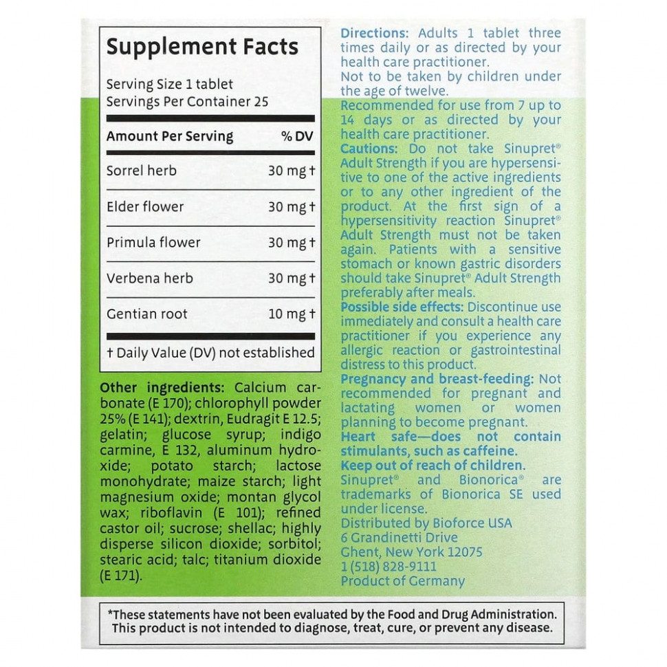 Bionorica, Sinupret, Adult Strength, поддержка здоровья носовых пазух и иммунной системы для взрослых, 25 таблеток