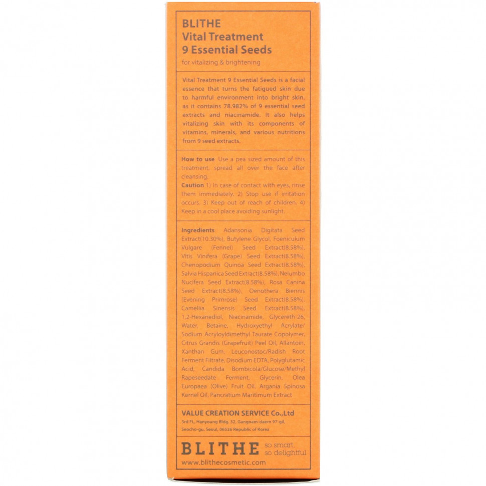 Vital Treatment 9 Essential Seeds — это эссенция для лица, которая возвращает яркий цвет усталой коже, страдающей из-за вредного воздействия окружающей среды, благодаря содержанию 78,982% незаменимых экстрактов 9 семян и никотинамида. Она также оживляет кожу за счет витаминов, минералов и различных питательных веществ из экстрактов 9 семян.