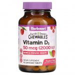 Жевательные таблетки EarthSweet Chewables с витамином D3 2000 МЕ от Bluebonnet содержат чистый витамин D3 (холекальциферол) из ланолина с натуральным малиновым вкусом. Для сладости в этот продукт добавляется EarthSweet — запатентованная смесь подсластителей из концентратов соков (дикой голубики, клюквы, сливы, клубники, винограда, малины и черники, экстрактов косточек винограда и малины) и кристаллического тростникового сахара. Для оптимального усвоения витамин производится в форме жевательных таблеток.