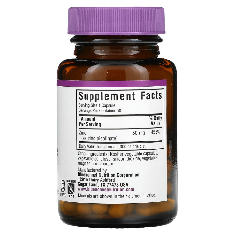 Пиколинат цинка от Bluebonnet в вегетарианских капсулах (50 мг) содержит цинк в виде хелата пиколиновой кислоты. Цинк — важный элемент, необходимый для здоровья иммунной системы и функции ферментов.