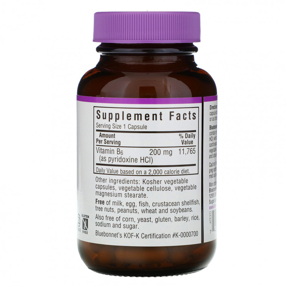 Витамин В6 200 мг от Bluebonnet в капсулах содержат самую чистую форму витамина B6 в кристаллах (гидрохлорид пиридоксина). Продукт производится в форме растительных капсул, которые легко глотать, для оптимального усвоения и всасывания.