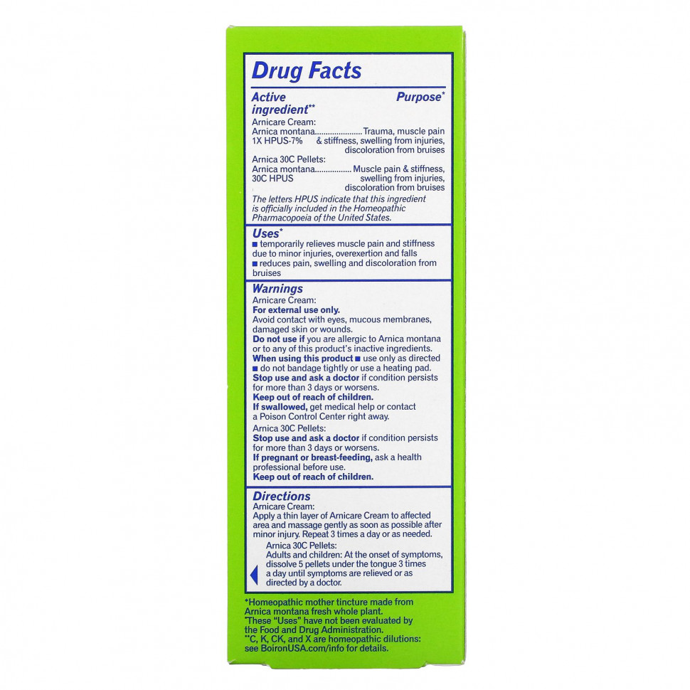 Для общего облегчения боли можно принимать гранулы Arnica 30C отдельно или в качестве дополнения к крему Arnicare.