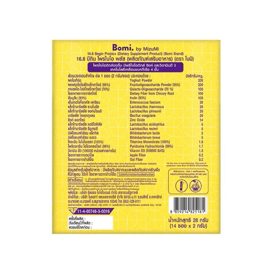 Bomi 16.8 Begin Probio+ (Supplement Product) Probiotics for Children Bomi 16.8 Begin Probio+ 16 Billion CFU/Sachet. 8 Probiotic strains + Prebiotic, Zinc, Vitamin D3 (Drink mix, Yogurt Flavor, 0% Sugar)
