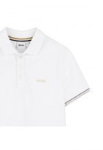 This is a classic and well-designed polo shirt for children, featuring the signature BOSS KIDS branding and attention to detail. The contrast detailing and ribbed elements add a touch of sophistication. The technical nature of the sketch suggests it’s a part of the design and production process.