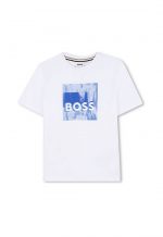 BOSS KIDS This is a simple and stylish t-shirt for children, featuring a modern graphic print with the BOSS logo. The clean white color makes it a versatile piece that can be easily paired with other items.