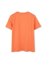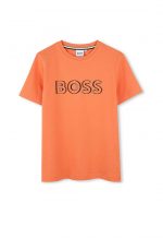 This is a simple and vibrant t-shirt for children, featuring the recognizable BOSS KIDS logo in an outlined style. The bright orange color makes it a standout piece. The product photo suggests it’s a real item available for purchase.