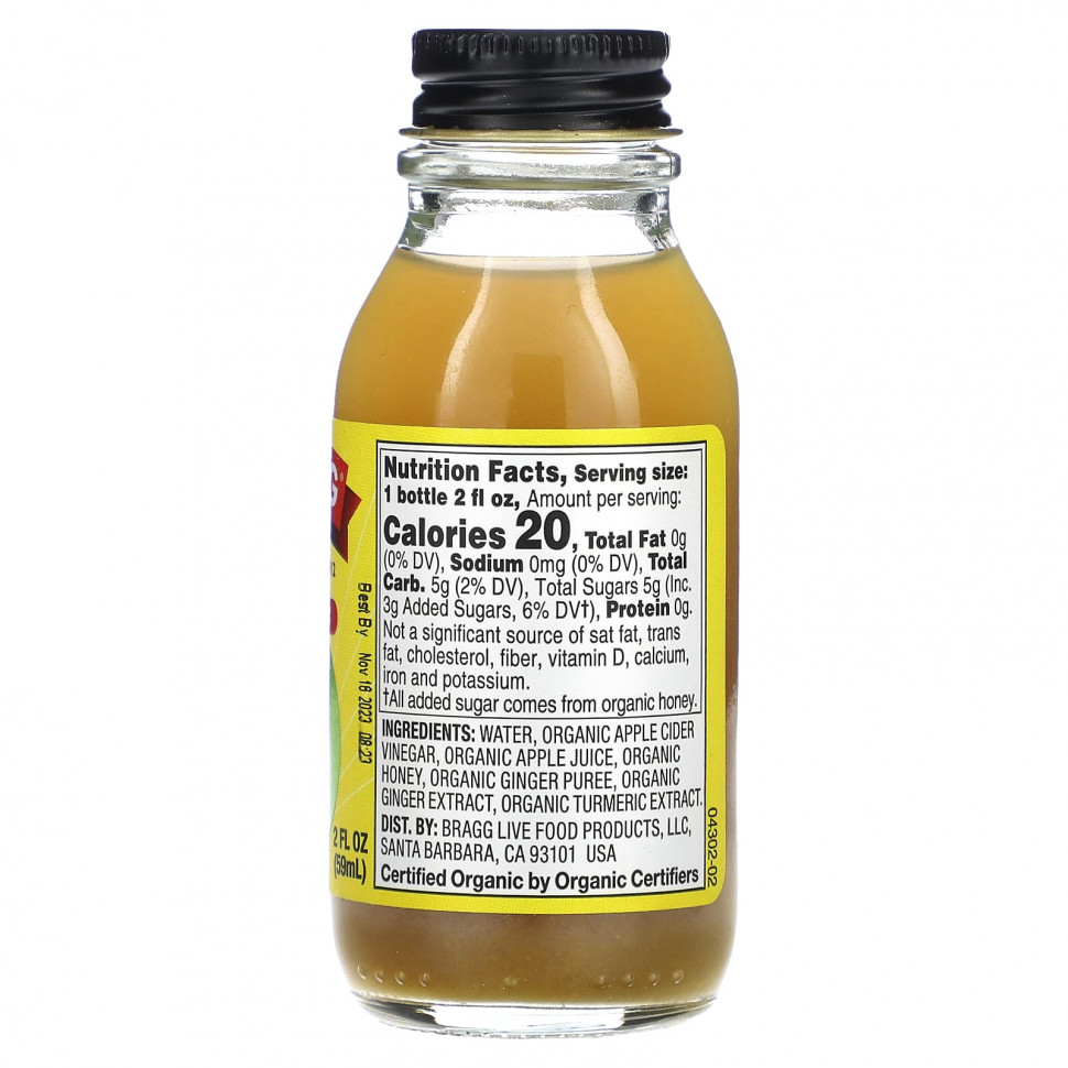 Каждая порция объемом 2 унции, готовая к употреблению, содержит одну столовую ложку нашего сырого нефильтрованного органического яблочного уксуса Брэгга с полезными для кишечника белками, ферментами и полезными бактериями.