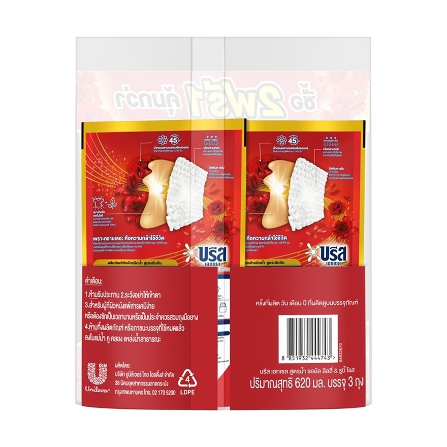 Breeze Excel Signature Royal Breeze Concentrated Liquid Detergent removes stain with premium fragrance that is long-lasting up to 4 weeks. Superior stain and malodor removal with naturally derived Enzyme formulation that is the best from Breeze. Based on laboratory test by expert company in 2020 — Upgraded newest perfume with long lasting for 4 weeks. — Removes tougher stains and malodor first time + with naturally derived enzymes. 1. Pre-Treat Tough Stains Pour a drop of liquid detergent directly onto any tough or dark stains. Rub the detergent into the stain and let the detergent sit for less than 30 minutes before washing. 2. Wash clothes 1 Cap (30ml) for clothes 12-17 pieces. Can use for both hand washing and washing machine.
