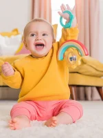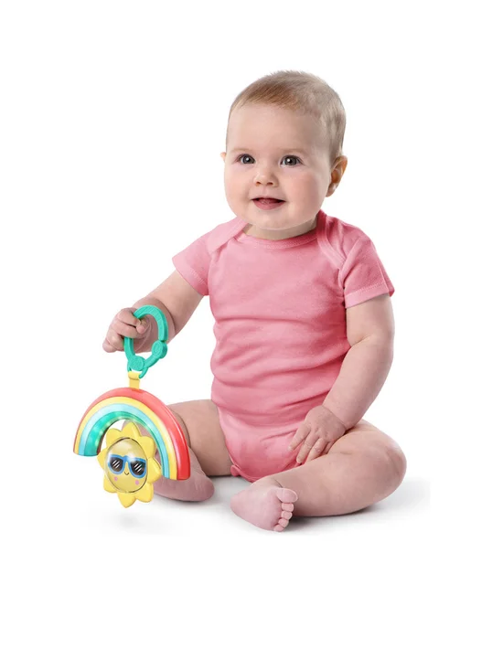 Catch your baby’s eye and keep her attention with the Sun Shaker by BRIGHT STARTS! You’ll delight your infant with cause-and-effect surprises like the light-up rainbow and cheerful tunes.