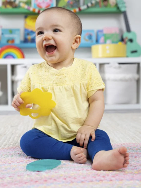 Soothing sore gums has never been sweeter with our sunshine and popsicle shaped Sunny Soothers multi-textured teethers from Bright Starts. You’ll get double the teethers for double the comfort! The bristle design massages baby’s gums as their teeth begin to poke through. With a BPA free material and easy-grasp shape, baby can take a bite out of sunshine for teething relief.