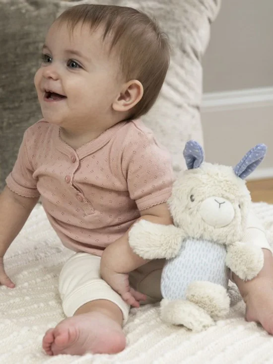 Bright Starts Sylvi Squeak Toy from Ingenuity responds to the baby’s every hug. The gentle squeaker sound will surprise your infant when it chimes from this sweet stuffed animal. The easy-to-grasp plush toy is ready for cuddles and comfort whenever you need to soothe the baby, and it fits easily in the diaper bag for on-the-go hugs. As part of the hippity hopping Sylvilagus family, Sylvi the bunny rabbit keeps the baby company while you jump from task to task.